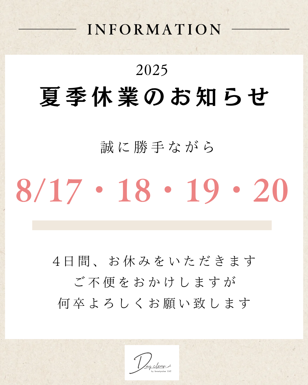 夏季休業のお知らせ